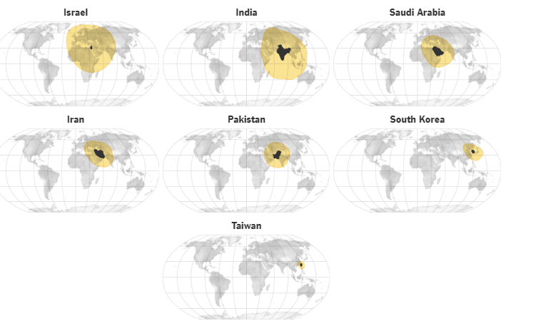 Ερευνητές παρουσίασαν μια ρεαλιστική -και κάπως τρομακτική- απεικόνιση ανά κράτος της εμβέλειας των βαλλιστικών πυραύλων που μπορούν να πλήξουν οποιαδήποτε γωνιά του πλανήτη, σε ψηφιακή υδρόγειο. Αφού μελέτησαν όλα τα δεδομένα, έχοντας ως βάση τις επίσημες ανακοινώσεις και αναφορές των διεθνών υπηρεσιών, προέκυψε πως μόλις πέντε κράτη διαθέτουν πυραυλική εμβέλεια ικανή να καλύψει όλον τον πλανήτη, με τη Βόρεια Κορέα να μένει εκτός.