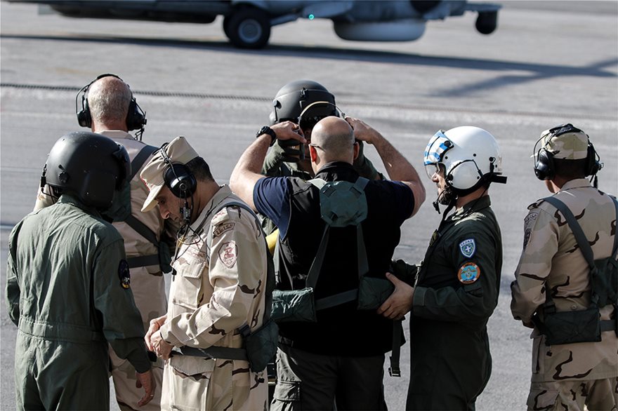 Οι τρεις υπουργοί Άμυνας Ελλάδος – Αιγύπτου – Κύπρου κύριοι Νίκος Παναγιωτόπουλος, Αχμέτ Ζακί και Σάββας Αγγελίδης παρακολουθούν την τελική φάση της διακλαδικής άσκησης «Μέδουσα 9» που διεξάγεται στην ευρύτερη περιοχή της Κρήτης. Η άσκηση αποσκοπεί στην περαιτέρω ενίσχυση της συνεργασίας των Ενόπλων Δυνάμεων Ελλάδας, Αιγύπτου και Κυπριακής Δημοκρατίας.