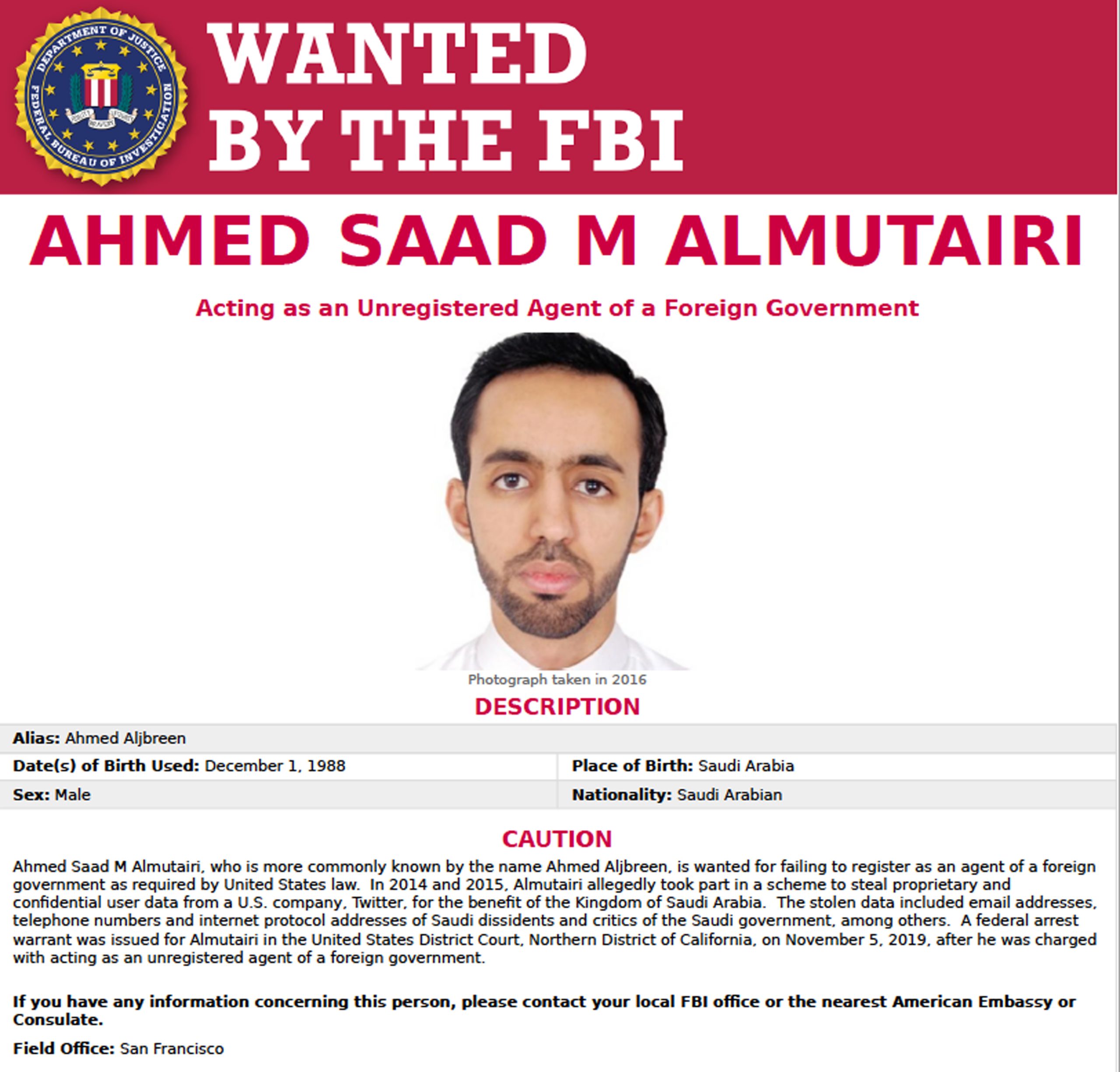 Σύμφωνα με τα δικαστήρια του San Francisco, η κυβέρνηση της Σαουδικής Αραβίας επιστράτευσε υπαλλήλους του Twitter για να κατασκοπεύσουν χιλιάδες λογαριασμούς οι οποίοι ασκούσαν κριτική στην κυβέρνηση.