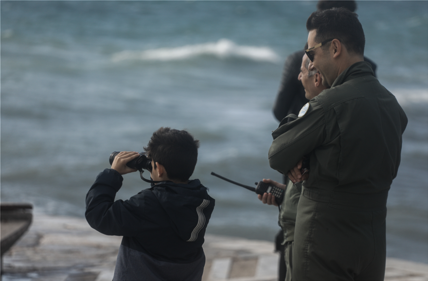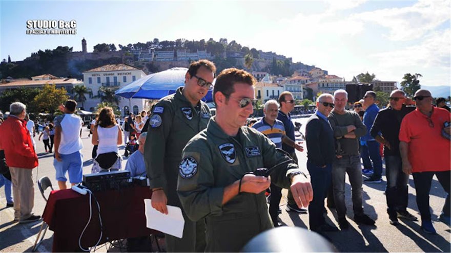 Στο λιμάνι Ναυπλίου συγκεντρώθηκε αρκετός κόσμος για να θαυμάσει την αεροπορική επίδειξη ανάμεσά τους και ο πρώην διεθνής ποδοσφαιριστής Στράτος Αποστολάκης