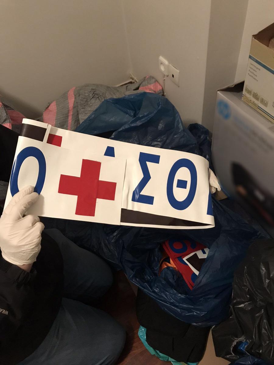 Ανάμεσα στα ευρήματα ήταν ένας φάρος καθώς και αυτοκόλλητα ασθενοφόρου. Οι αστυνομικοί εκτιμούν ότι οι συλληφθέντες, μαζί με τον καταζητούμενο συνεργό τους θα μετέτρεπαν σε ασθενοφόρο όχημα, τύπου βαν, το οποίο θα έκλεβαν το επόμενο διάστημα. Με τον τρόπο αυτό θα περνούσαν απαρατήρητοι από τα «μάτια» της ΕΛ.ΑΣ. ακόμα και από κεντρικούς δρόμους της Αττικής. Κανείς δεν θα υποπτευόταν ένα ασθενοφόρο.