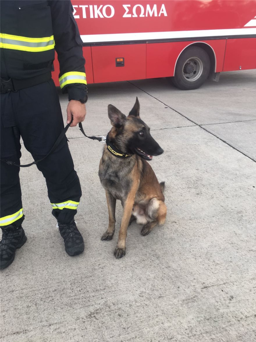 Μαζί τους οι δύο ειδικοί σκύλοι έρευνας και διάσωσης που θα συνδράμουν στην προσπάθεια για τον εντοπισμό ανθρωπίνων ζωών κάτω από τα συντρίμμια.