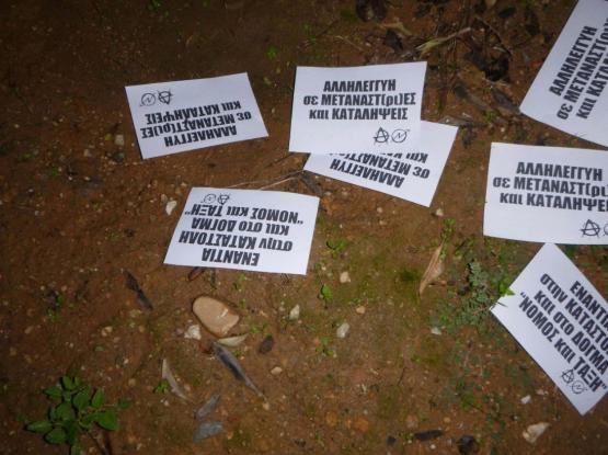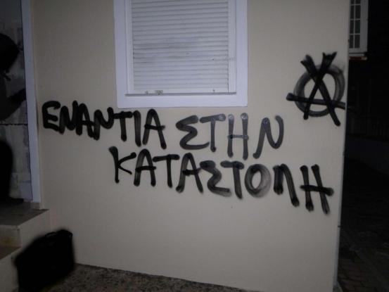 Τα ίδια άτομα έγραψαν συνθήματα και πέταξαν τρικάκια ενάντια στην καταστολή.