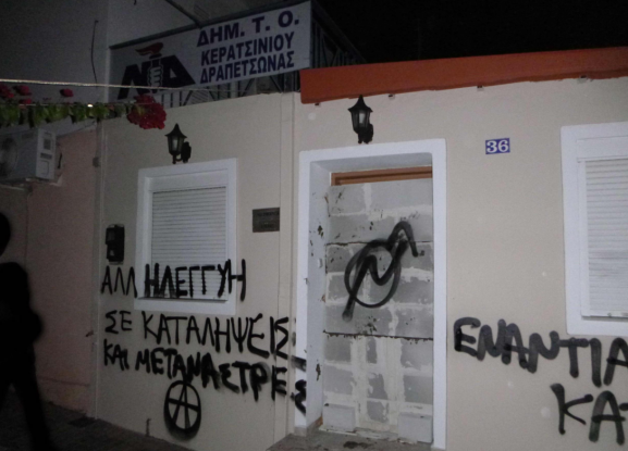 Στο χτίσιμο της εισόδου γραφείων της ΝΔ στο Κερατσίνι με τσιμεντόλιθους προχώρησαν άγνωστοι το βράδυ της Δευτέρας.