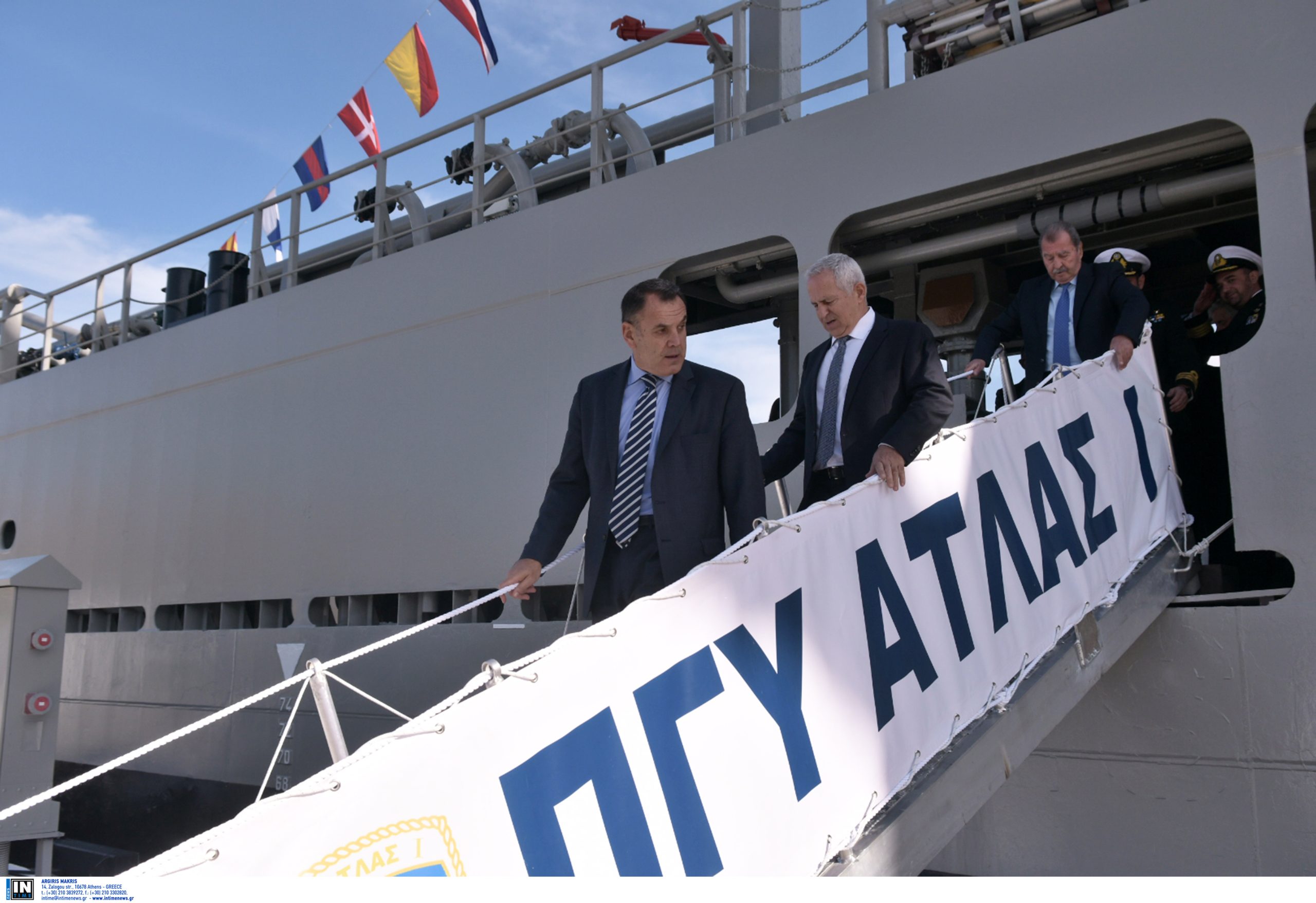 Κυρίες και Κύριοι, το Άτλας Ι, το νέο πλοίο γενικής υποστήριξης του Πολεμικού μας Ναυτικού από σήμερα, είναι ένα δείγμα μόνο της όλης προσφοράς του κ. Λασκαρίδη και της Οικογένειάς του. Και εύχομαι και ελπίζω, το παράδειγμά του να το ακολουθήσουν και άλλοι. Γιατί τούτος ο Τόπος, ακόμη και σήμερα, παρά το γεγονός ότι οι οιωνοί εμφανίζονται καλύτεροι, πάντα έχει ανάγκη από αυτούς που σκέφτονται την Πατρίδα, τον Λαό μας και το Έθνος μας. Ευχαριστώ τον κύριο Λασκαρίδη πολύ περισσότερο γιατί ενισχύεται, μέσω του Άτλας Ι, το Πολεμικό μας Ναυτικό, σε μια στιγμή κατά την οποία, λόγω και της συγκυρίας, κορυφώνεται ο ρόλος του ως αιχμής του δόρατος φύλαξης των Θαλάσσιων Συνόρων μας, και όχι μόνο.