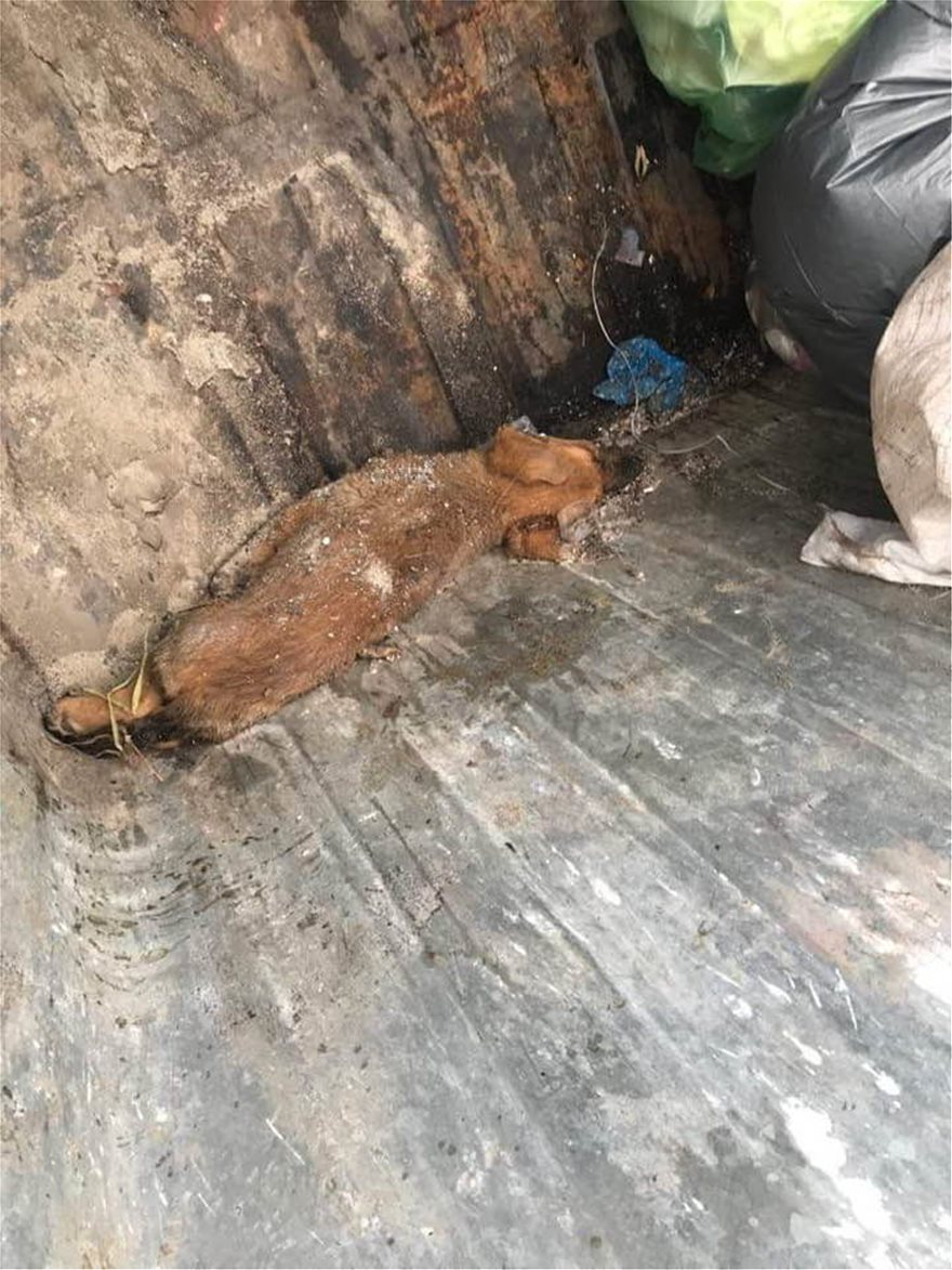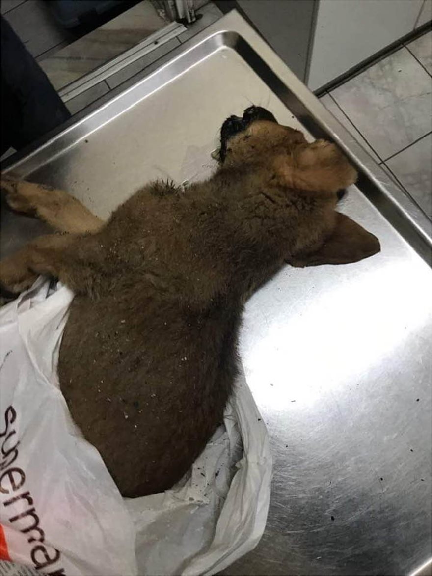 Θύμα ένα άτυχο αδέσποτο κουτάβι που βρέθηκε κακοποιημένο σε έναν κάδο σκουπιδιών.