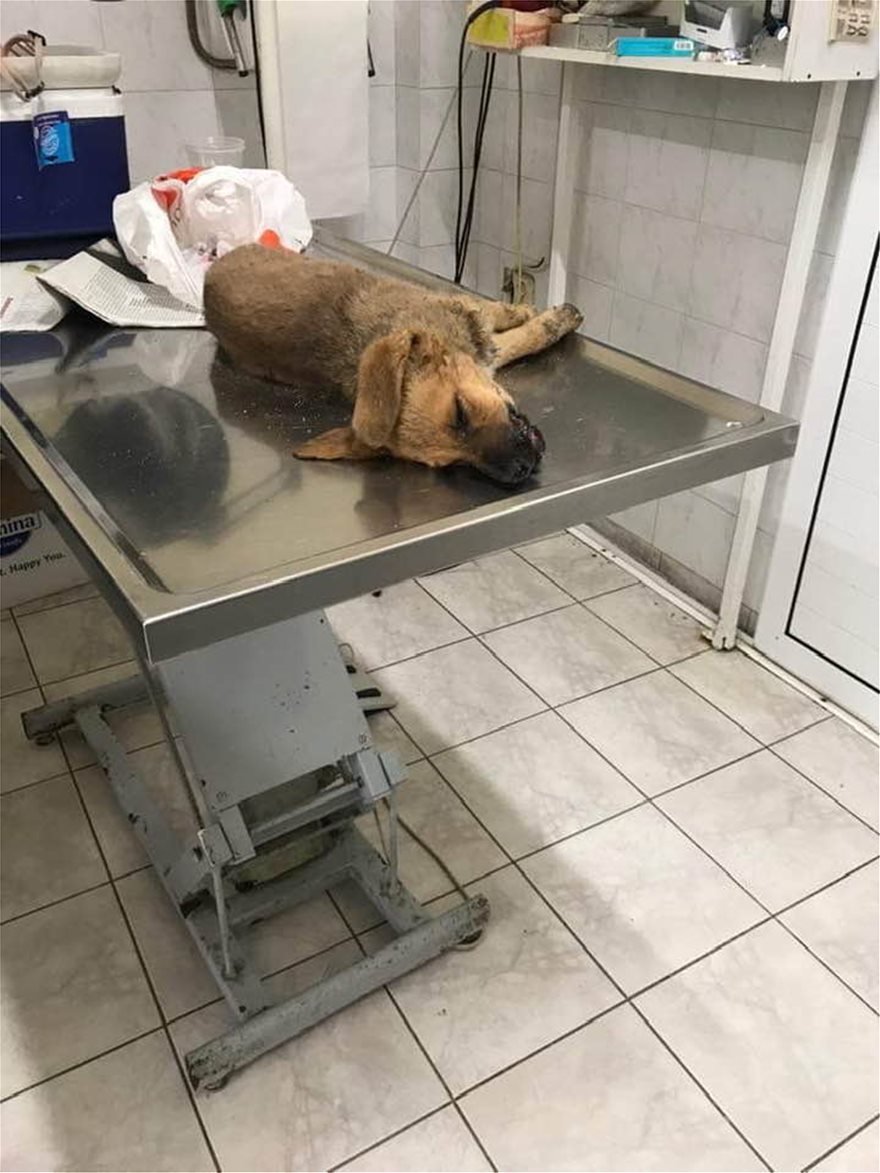 Το σκυλάκι, μεταφέρθηκε σε κτηνιατρείο της περιοχής, όπου πραγματικά σώθηκε την τελευταία στιγμή.