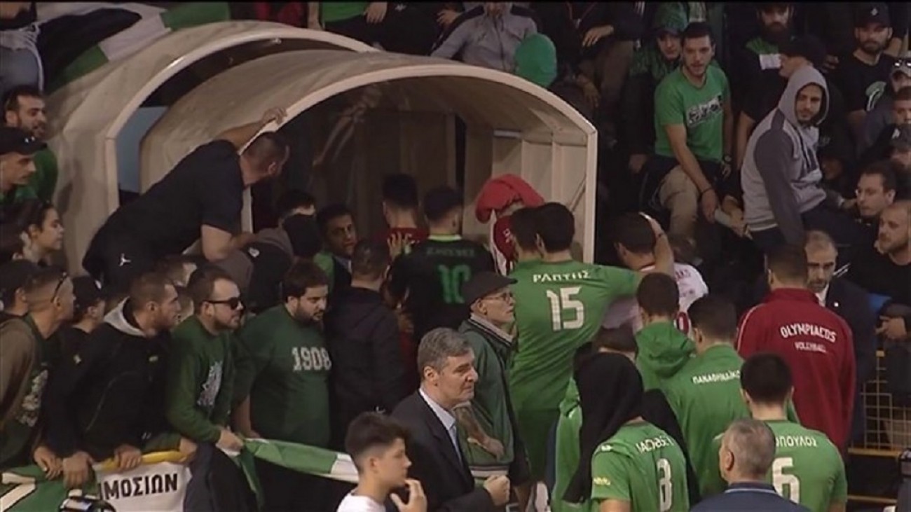 Ένας αστυνομικός τραυματίστηκε από τα επεισόδια που σημειώθηκαν στο περιθώριο του αγώνα βόλεϊ ανδρών μεταξύ του Παναθηναϊκού και του Ολυμπιακού, στο κλειστό γήπεδο του Αγίου Θωμά.