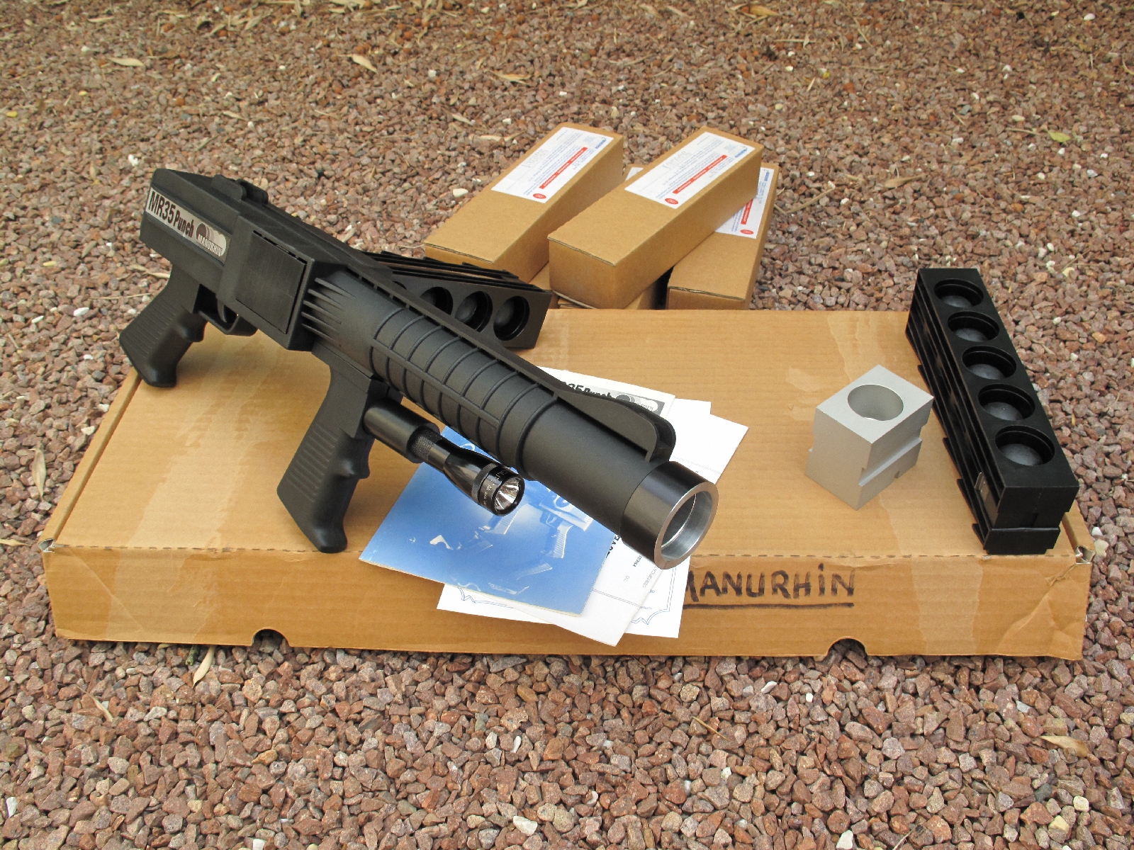 Τα όπλα MR-35 MANURHIN ή αλλιώς «όπλα γροθιά», είναι γαλλικής κατασκευής, μη θανατηφόρα όπλα που χρησιμοποιούνται αποκλειστικά από τις ειδικές δυνάμεις καθώς χρειάζεται ειδική εκπαίδευση. Σύμφωνα με ειδικούς, το συγκεκριμένο όπλο εκτοξεύει βολίδες καουτσούκ σε μέγεθος μπάλας πινγκ πονγκ με ταχύτητα 112 μέτρων το δευτερόλεπτο. Το χτύπημα από MR-35 MANURHIN προκαλεί έντονο πόνο αλλά όχι τον θάνατο.