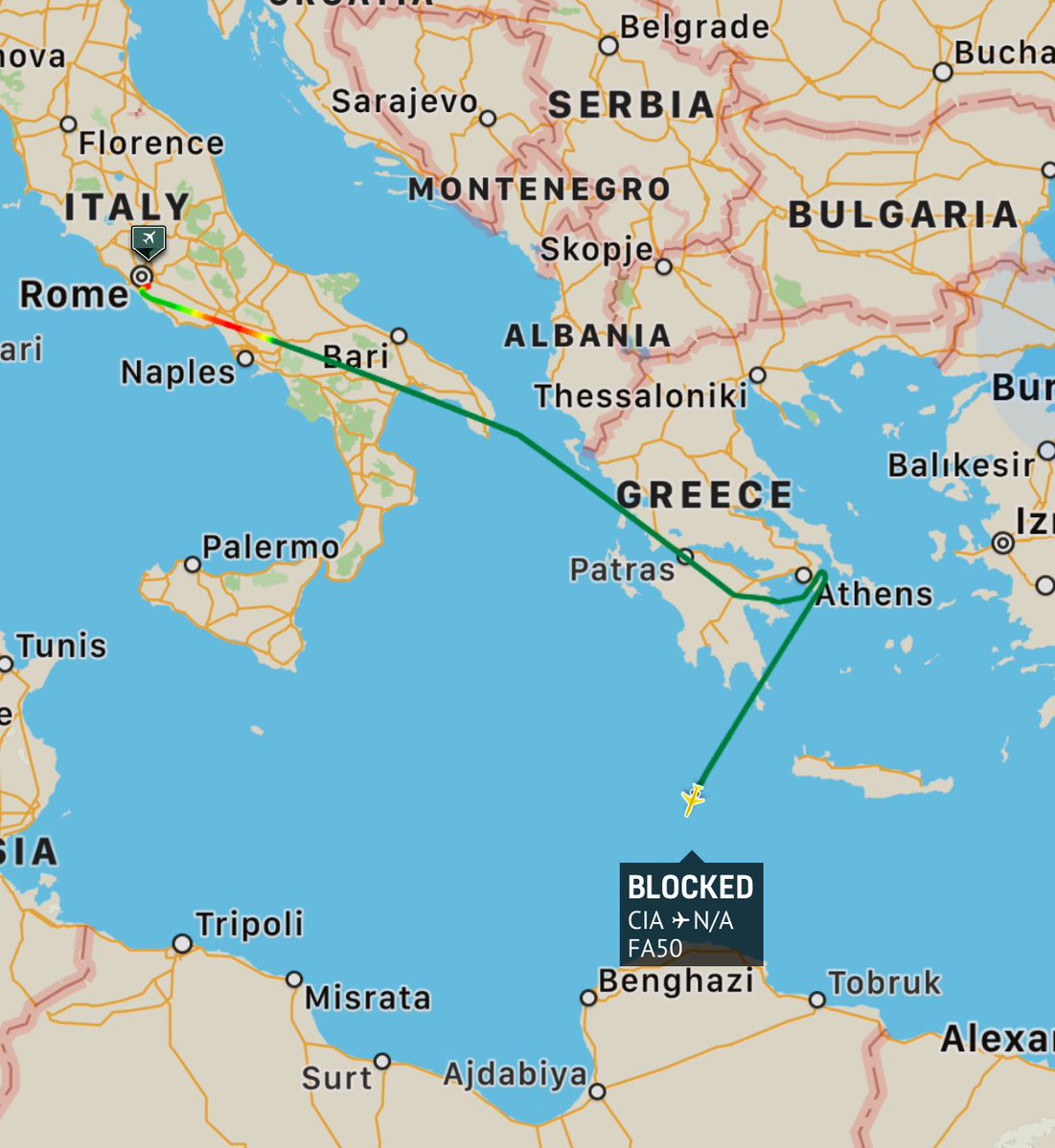 Είναι άγνωστο ποιον μετέφερε το Falcon 50EX και σε αυτό επέβαινε κάποιος συνεργάτης του Χαλίφα Χαφτάρ.
