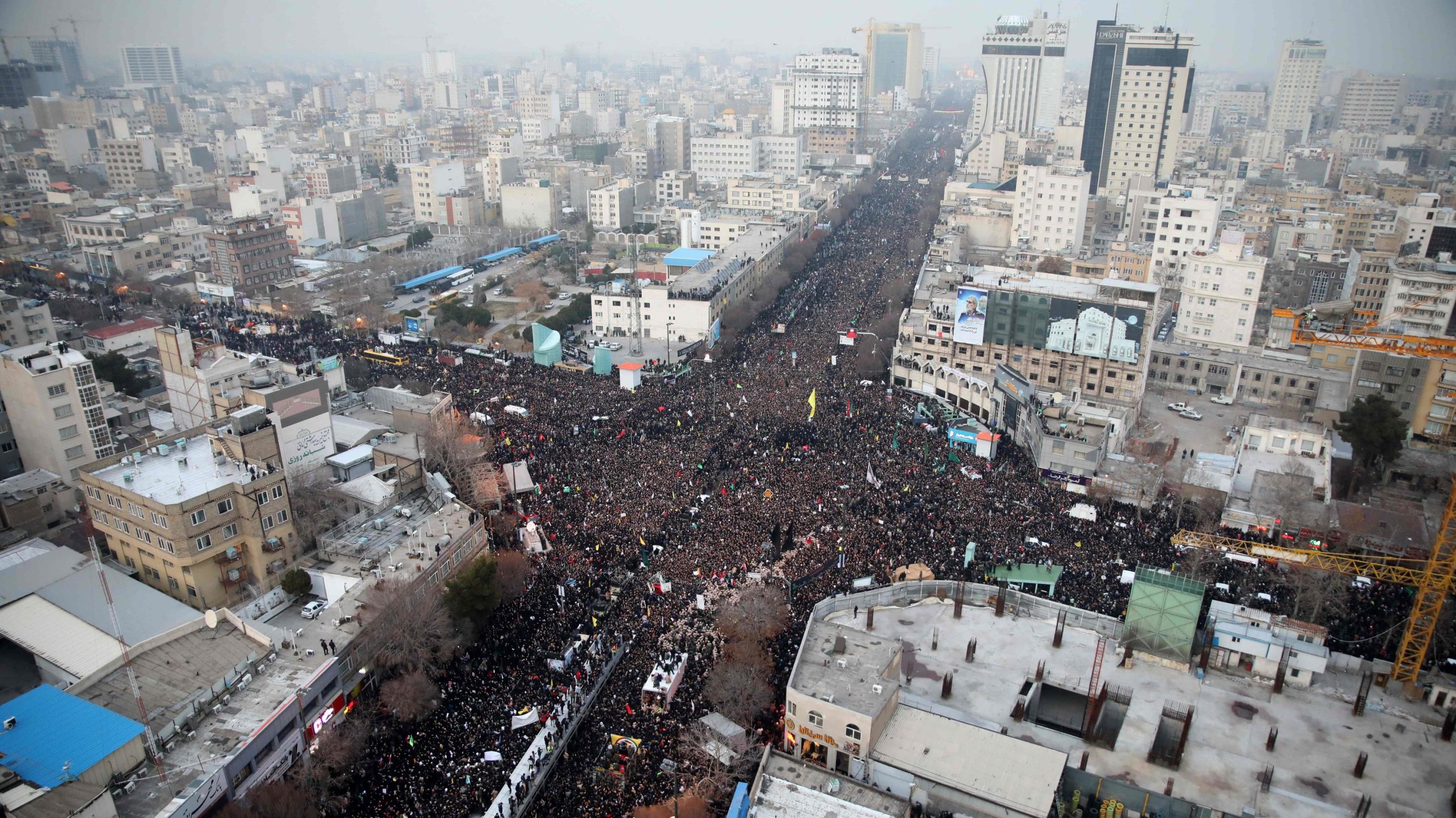 Αναφερόμενη στον θάνατο του στρατηγού Σουλεϊμανί και των άλλων Ιρανών που σκοτώθηκαν μαζί του η κρατική τηλεόραση του Ιράν, που κάλυπτε απευθείας την κηδεία από το κέντρο της Τεχεράνης, είχε τίτλο με κεφαλαία γράμματα: «Άνευ προηγουμένου ανάσταση της ιρανικής πρωτεύουσας κατά την υποδοχή του Χατζ Κασέμ και των μαρτύρων της αντίστασης».