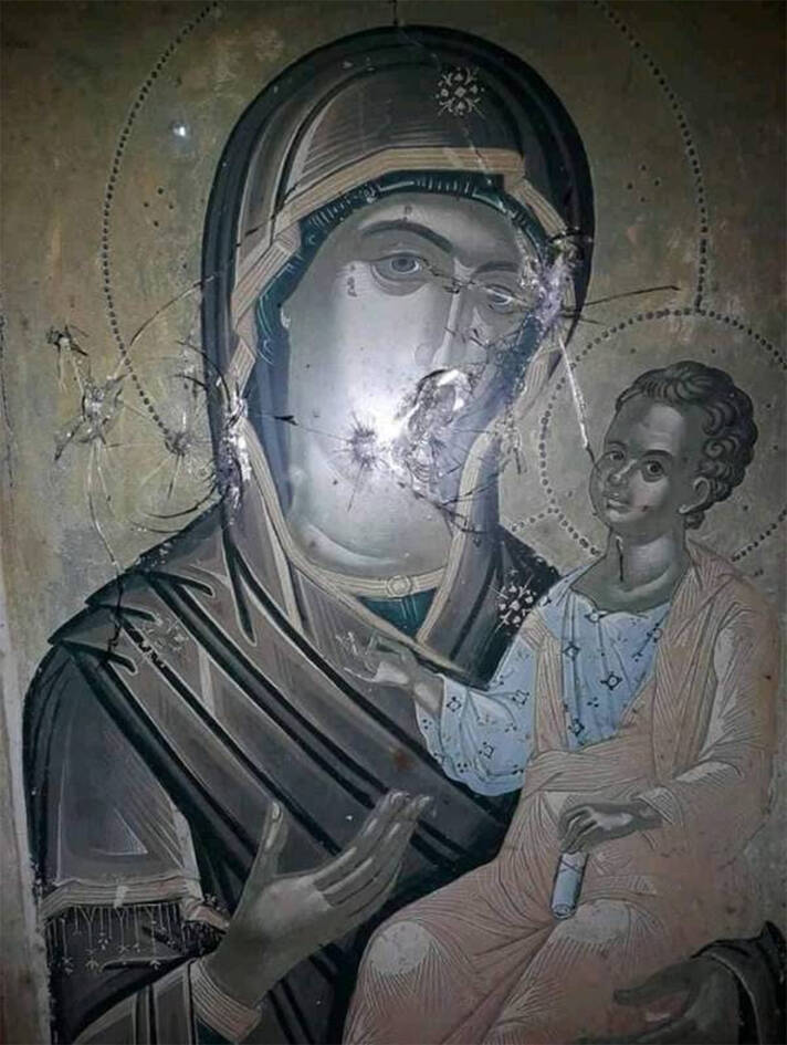 Οι πρώτες εκτιμήσεις αναφέρουν ότι οι ζημιές προήλθαν είτε από μικρό αεροβόλο όπλο είτε από όπλο με πλαστικές σφαίρες, καθώς δεν εντοπίστηκε κάποιο βλήμα μέσα στους δύο ναούς.