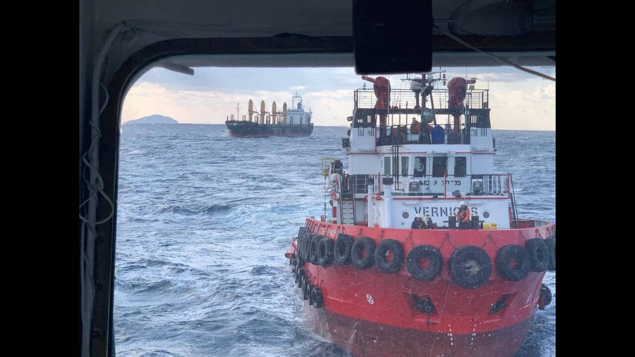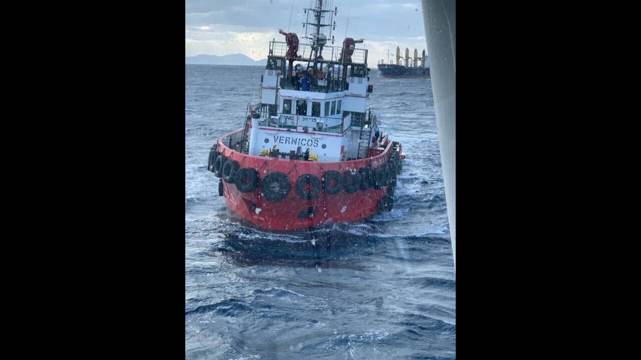 Η κατάσταση βρίσκεται πλέον υπό έλεγχο, με τα ρυμουλκά Vernicos Sifnos και Alexander 5 να οδηγούν πλέον το πλοίο προς τα Βάτικα στη Νεάπολη.