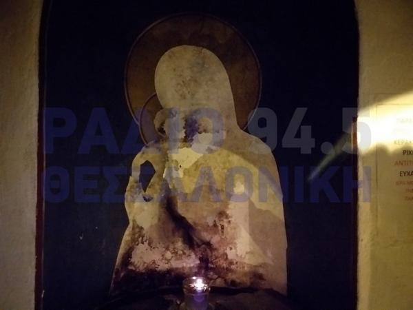Άγνωστοι στη Θεσσαλονίκη, βανδάλισαν την εικόνα της Παναγίας που βρίσκεται στο παρεκκλήσι που εφάπτεται στον ιερό ναό της Παναγίας Δέξιας στην Καμάρα, στο κέντρο της πόλης.