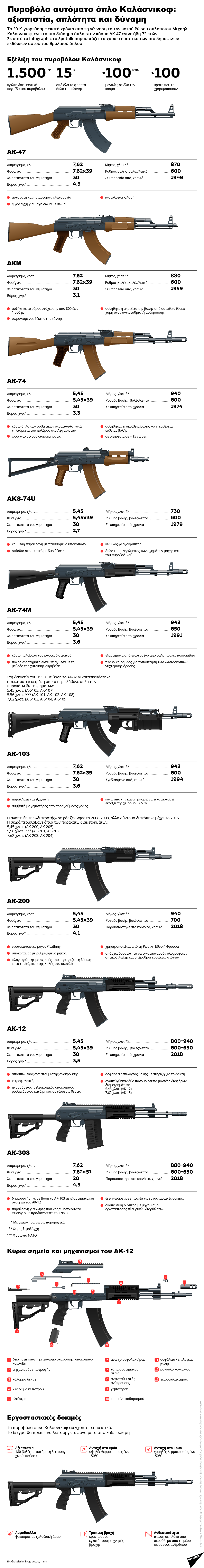 Δείτε ένα ενδιαφέρον πληροφοριογράφημα για το πιο διάσημο ρωσικό τυφέκιο μάχης του ΑΚ-47 και όλες τις εκδόσεις της οικογένειας των ΑΚ.