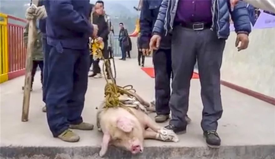 Τοπικά Μέσα ενημέρωσης αναφέρουν μάλιστα πως μετά το σοκαριστικό στιγμιότυπο ο χοίρος εστάλη σε σφαγείο.
