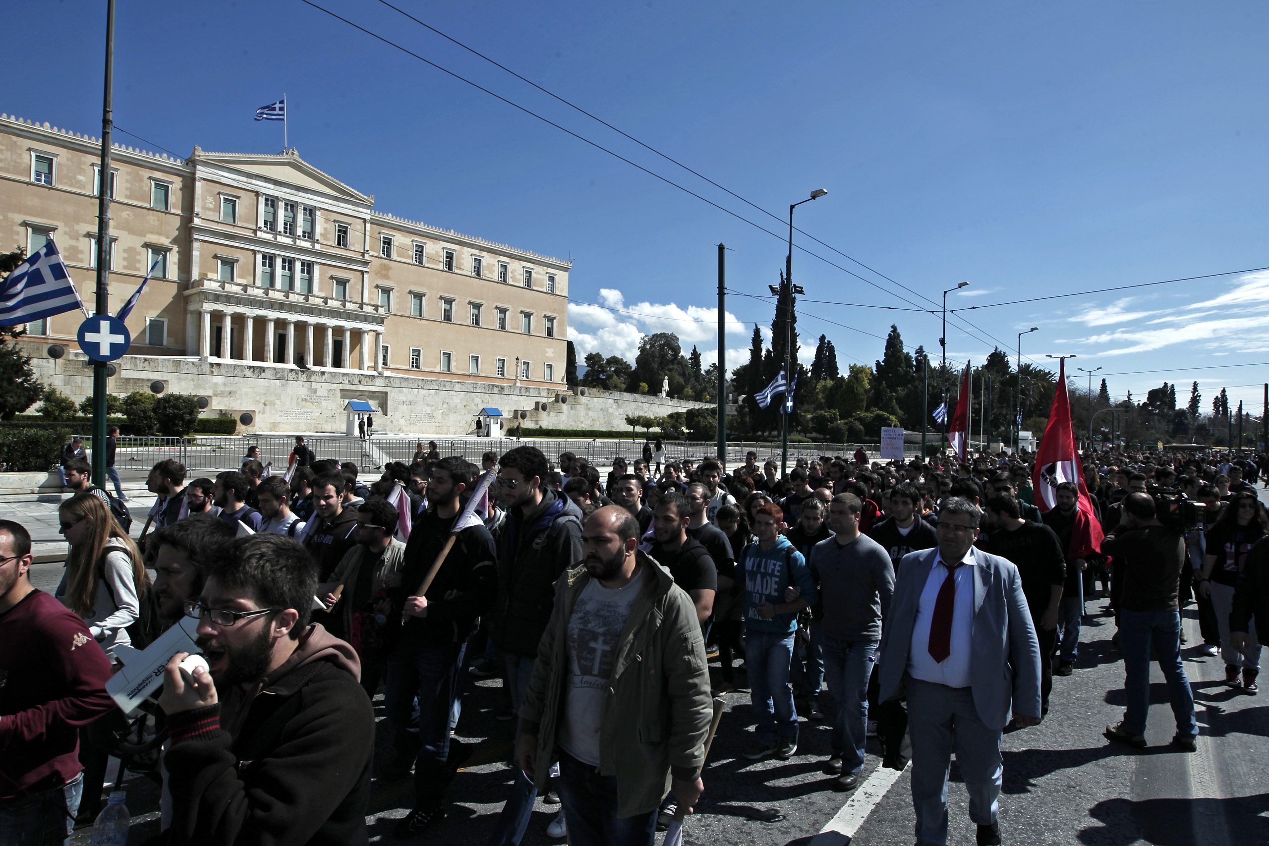 Αυτή την ώρα ομοσπονδίες εκπαιδευτικών και φοιτητές είναι συγκεντρωμένοι στην πλατεία Συντάγματος με σκοπό να διαμαρτυρηθούν για τη διάταξη που επιτρέπει σε απόφοιτους κολεγίων να διεκδικήσουν μια θέση στη δημόσια εκπαίδευση.