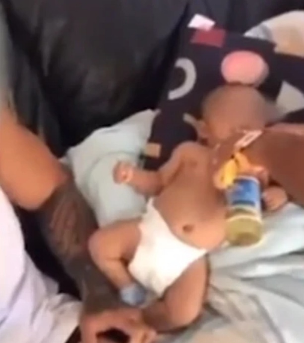 Στο βίντεο το οποίο έχει αποσυρθεί ακούγονται γέλια από τη μητέρα του μωρού, αλλά και από έναν άνδρα με τατουάζ στο χέρι που βρίσκεται δίπλα στο μωράκι.