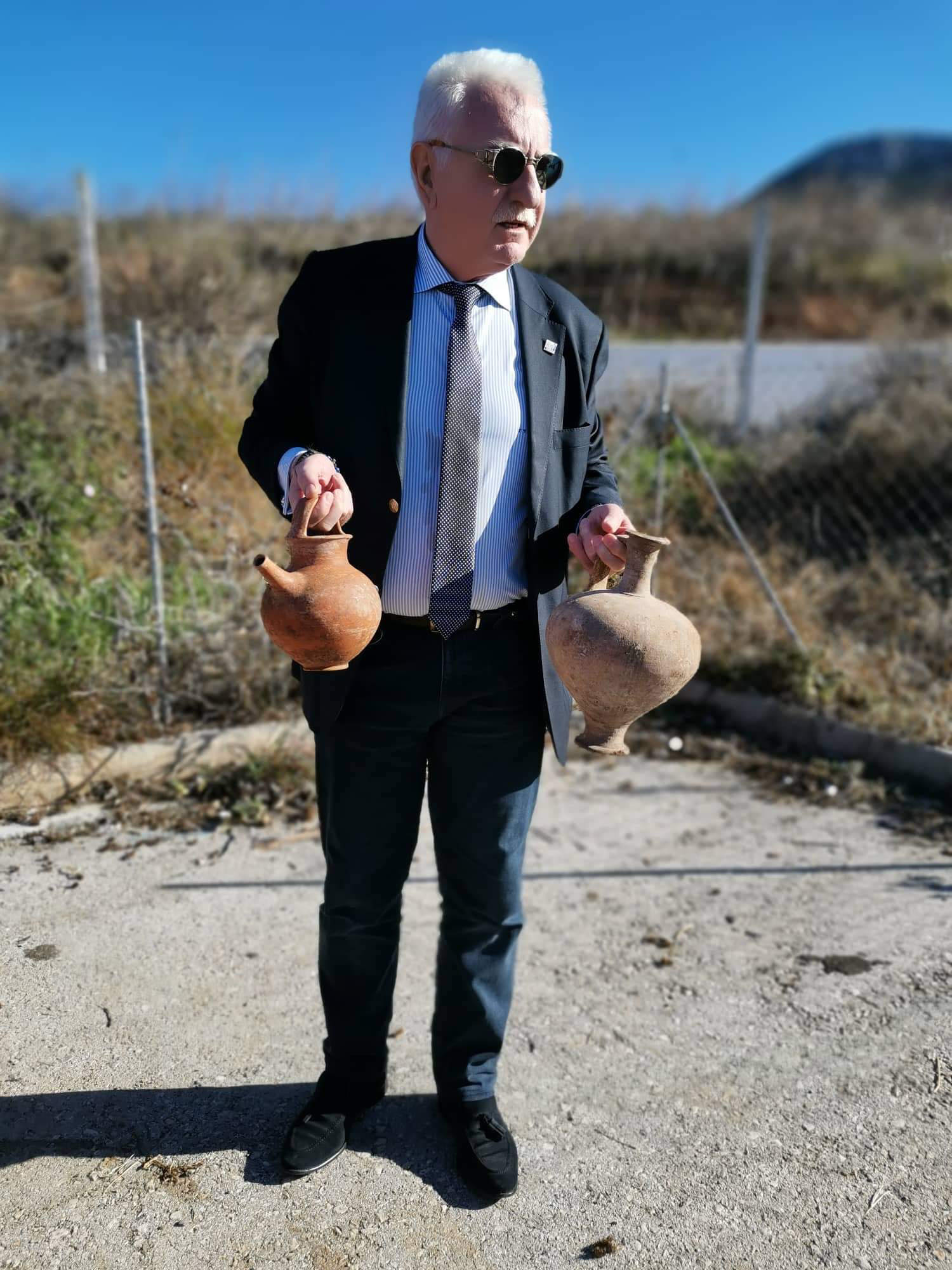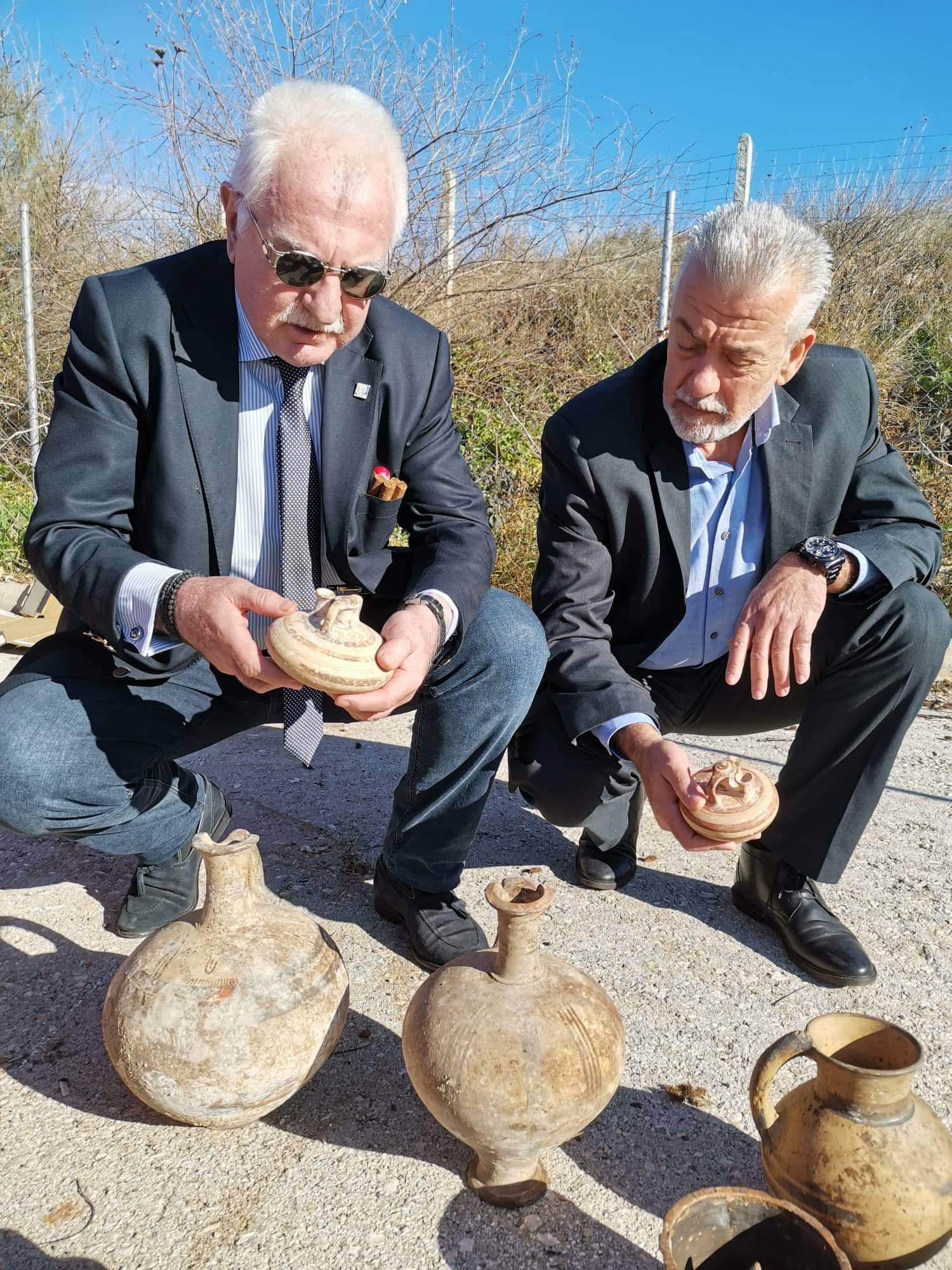 Ο ιδιωτικός ερευνητής Γιώργος Τσούκαλης και οι στενοί συνεργάτες του, επίσης ιδιωτικοί ερευνητές Φώντας Βρόσγος και Πέτρος Γωνιωτάκης, ανακάλυψαν αρχαία αντικείμενα ανυπολόγιστης αξίας σε αγροτεμάχιο κοντά στην περιοχή Αϊδονίων.
