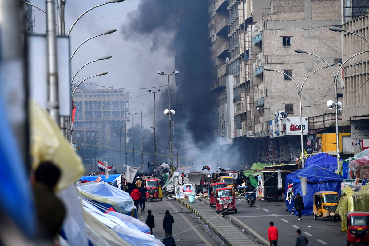 Στη Ντιουανίγια, στο νότιο Ιράκ, νεαροί αντικυβερνητικοί διαδηλωτές και «γαλάζια καπέλα», όπως ονομάζονται οι υποστηρικτές του Σαντρ, συγκρούστηκαν προτού τους χωρίσουν οι αστυνομικές δυνάμεις.