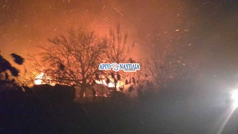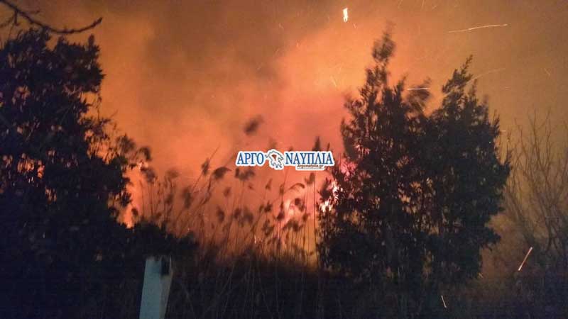 Στην περιοχή απειλούνται σπίτια με τους κατοίκους να βρίσκονται στο πόδι για να σώσουν τις περιουσίες τους Στο σημείο βρίσκονται ο Αντιπεριφερειάρχης Αργολίδας, Ιωάννης Μαλτέζος, ο Δημαρχος Άργους Μυκηνών Δημήτρης Καμπόσος και οι αντιδήμαρχοι Κρίγγος και Γκαβούνος.
