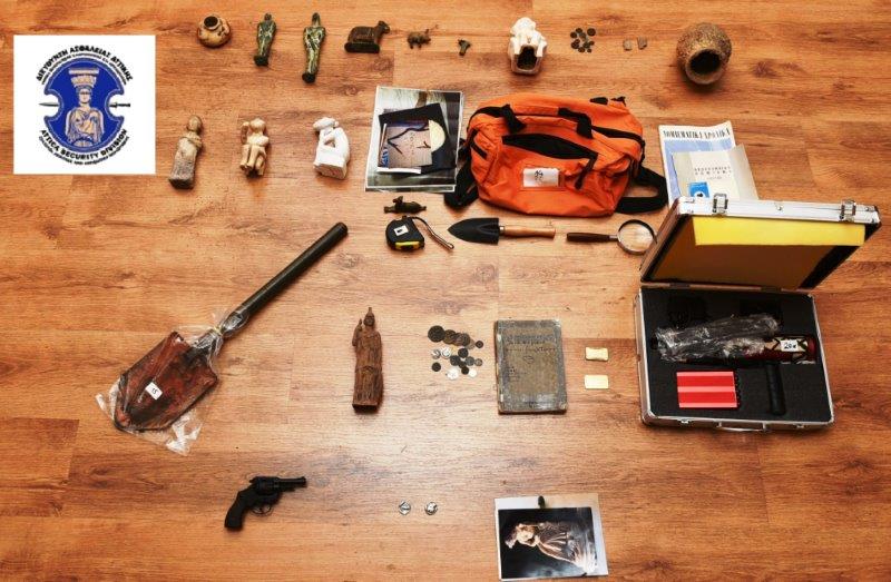 Επίσης κατασχέθηκαν ένας ανιχνευτής μετάλλων με τα παρελκόμενα αυτού(κεραίες, ενισχυτές κ.λπ.), σκαπτικά εργαλεία και ένα αυτοκίνητο που χρησιμοποιούσαν ως μέσο διάπραξης.