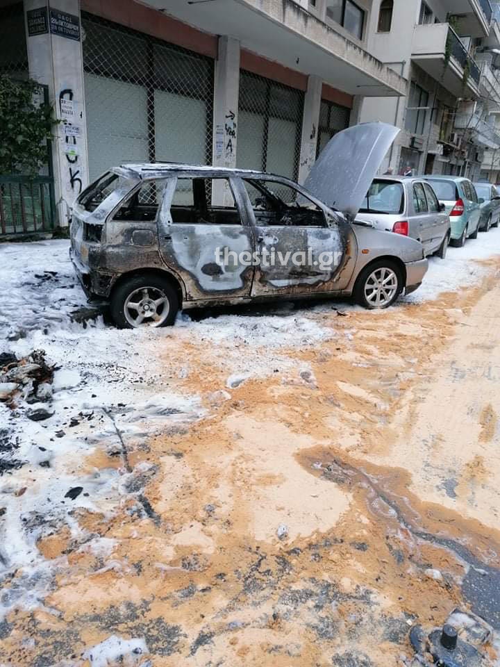 Περίπου μία ώρα αργότερα, στις 06:05 το πρωί, στις φλόγες τυλίχθηκε ΙΧ που ήταν σταθμευμένο επί της οδού Δημοσθένους στον Εύοσμο Θεσσαλονίκης. Στο συμβάν επιχείρησαν 6 πυροσβέστες με 2 οχήματα.
