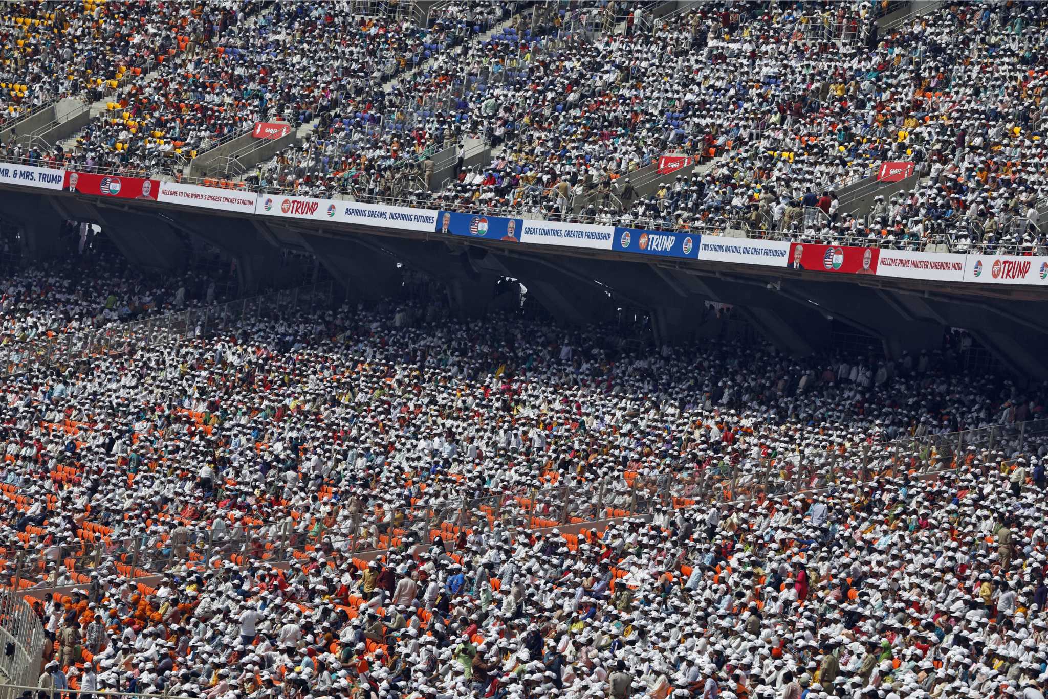Πλήθος κόσμου στο γιγαντιαίο στάδιο της πόλης Αχμενταμπάντ στην δυτική Ινδία για την υποδοχή του Αμερικανού Προέδρου Ντόναλντ Τραμπ, τον οποίο συνοδεύουν η Πρώτη Κυρία Μελάνια Τραμπ και η κόρη του Ιβάνκα.