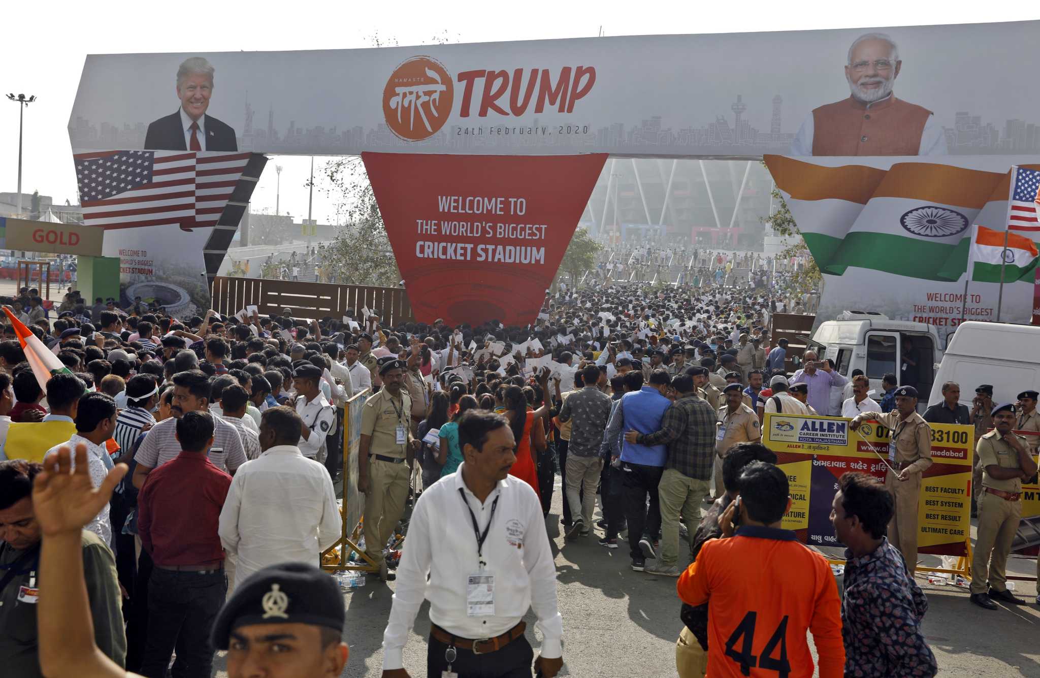 Ο Μόντι, ινδουιστής εθνικιστής πολιτικός που έχει αποπειραθεί να οικοδομήσει στενή προσωπική σχέση με τον Τραμπ, προετοίμαζε καιρό αυτήν τη φαντασμαγορική υποδοχή.