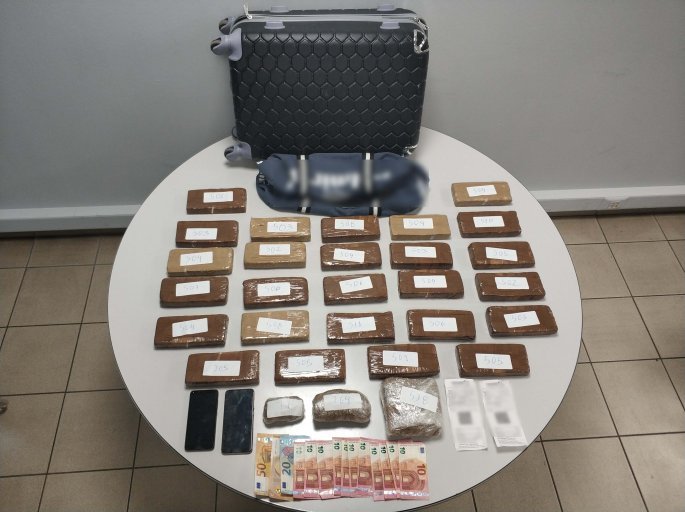 Μετά από έλεγχο από αστυνομικούς του Τμήματος Γενικών Υποθέσεων της Υποδιεύθυνσης Δίωξης Ναρκωτικών της Διεύθυνσης Ασφάλειας Θεσσαλονίκης στην βαλίτσα τους βρέθηκαν και κατασχέθηκαν: 26 δέματα ηρωίνης συνολικού βάρους 13 κιλών και 137 γραμμαρίων και 3 δέματα κοκαΐνης συνολικού βάρους 879 γραμμαρίων.