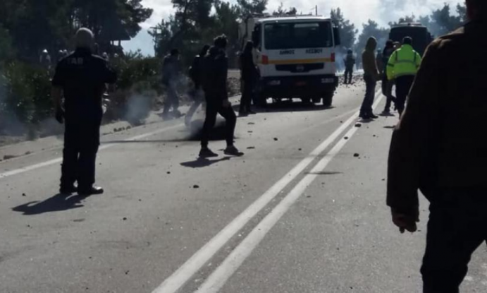 Σφοδρές συγκρούσεις με χρήση πυροβόλων όπλων από την πλευρά των αστυνομικών, όπως καταγγέλλουν οι κάτοικοι της Λέσβου, διεξάγονται αυτή τη στιγμή στη θέση Διαβολόρεμα του νησιού.