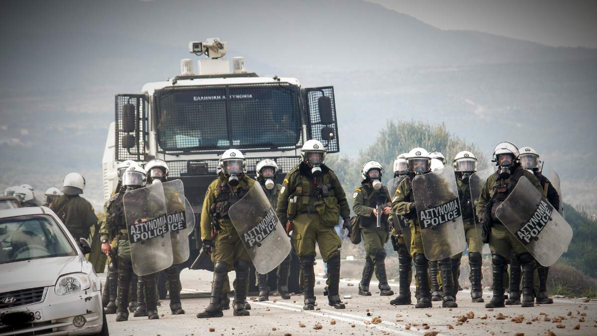 Στο λιμάνι της Χίου βρίσκονταν 14 κλούβες με άνδρες των ΜΑΤ, φορώντας πολιτικά ρούχα, περιμένοντας την άφιξη του πλοίου για την αποχώρησή τους από το νησί.
