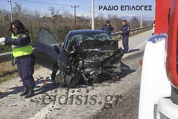 Στο αυτοκίνητο που κινούνταν προς Θεσσαλονίκη επέβαιναν τρία άτομα, από τα οποία τα δυο είναι νεκρά, ο οδηγός 47 χρόνων και ο συνοδηγός του 21 χρόνων από το Πολύκαστρο.