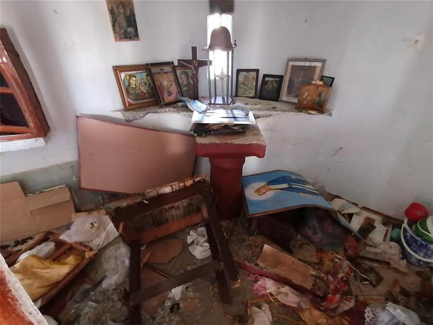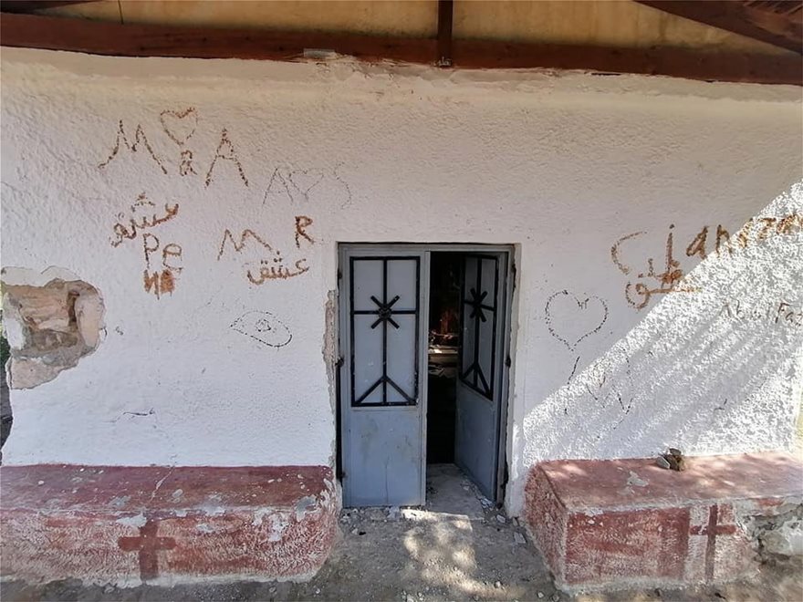 Βάνδαλοι αλλοδαποί κατέστρεψαν το εκκλησάκι του Αγίου Γεωργίου στην Μόρια της Λέσβου, κατά την σημερινή εξέγερσή τους το μεσημέρι.