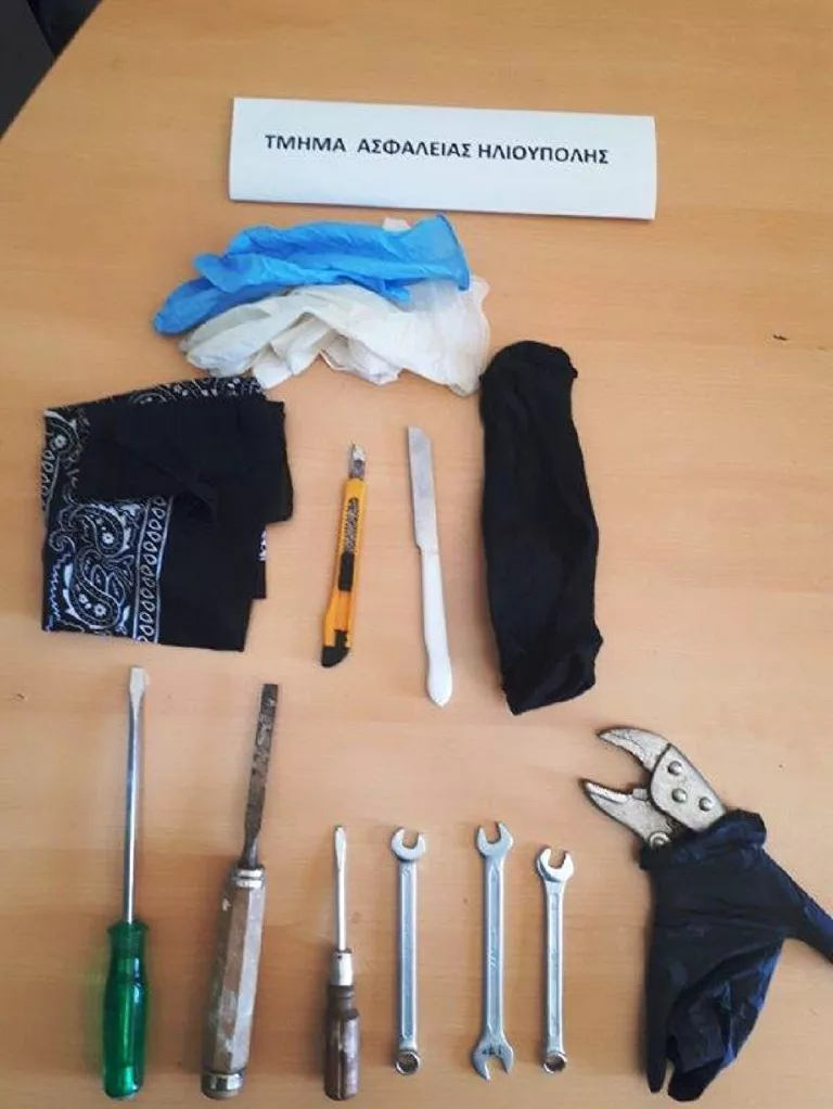 Στην κατοχή των συλληφθέντων στην Ηλιούπολη βρέθηκαν μεταξύ άλλων διαρρηκτικά εργαλεία και γάντια μιας χρήσης