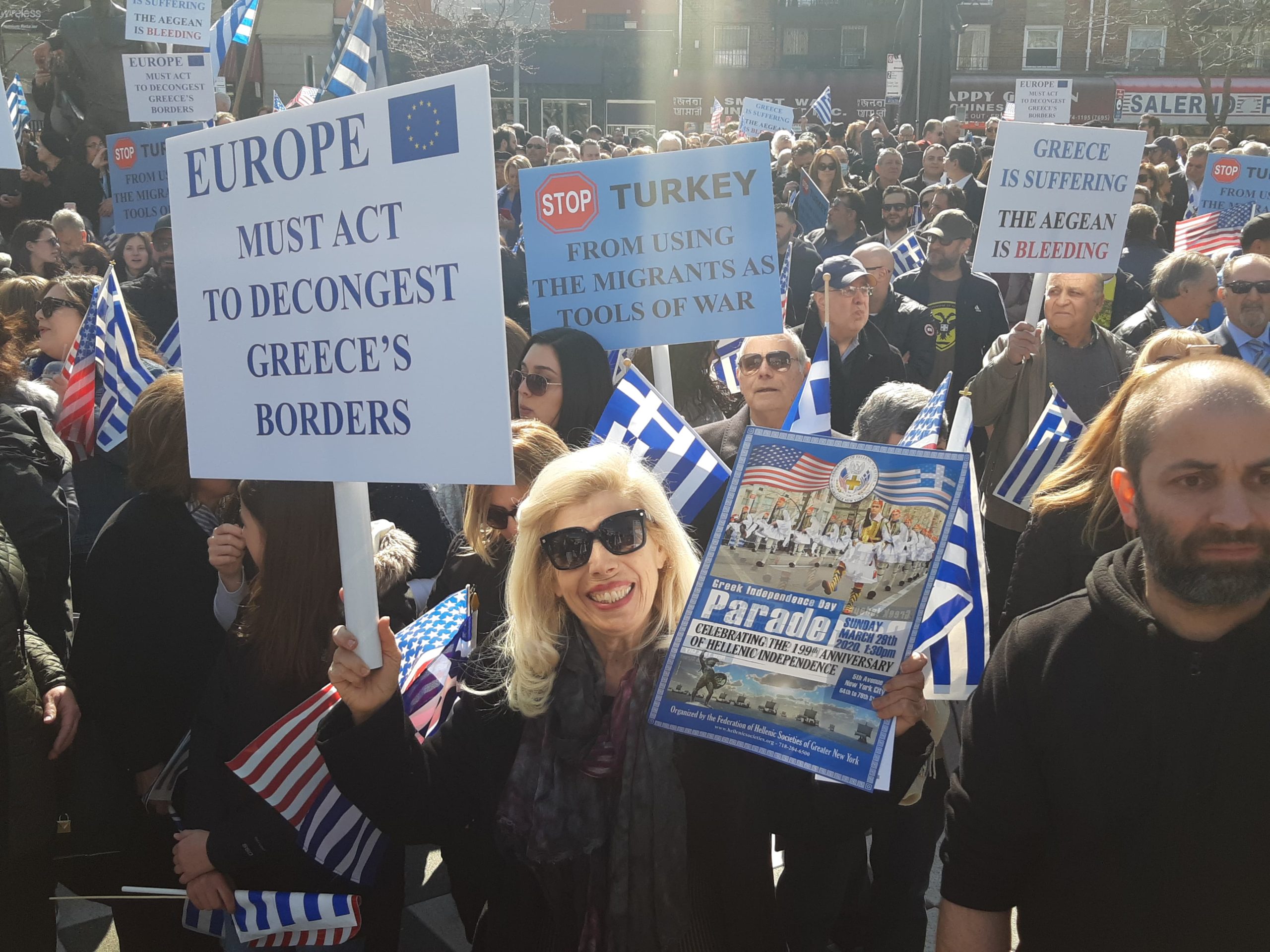 Το συλλαλητήριο έγινε από τις Ομοσπονδίες των κατοίκων της Νέας Υόρκης που προέρχονται από τις νησιωτικές περιοχές της Ελλάδας. Με πλακάτ και ελληνικές σημαίες στα χέρια οι Ελληνες ομογενείς διαδήλωσαν για το μεταναστευτικό, την ώρα που οι συνοριοφύλακες δίνουν τη δική τους μάχη στον Εβρο προκειμένου να αποτρέψουν την παράνομη είσοδο προσφύγων και μεταναστών στην Ελλάδα.