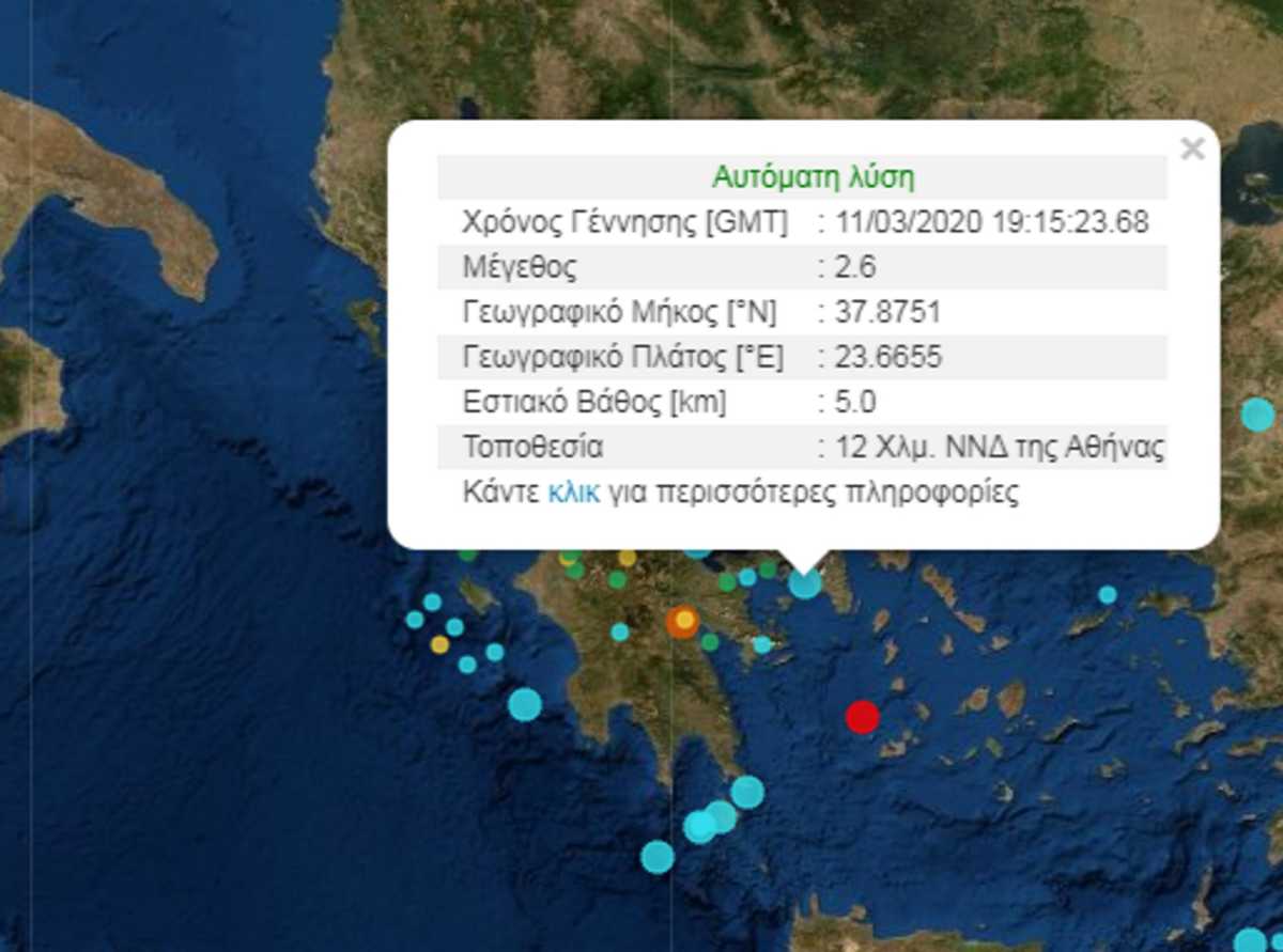 Σεισμός σημειώθηκε 12 χιλιόμετρα νότια νοτιοδυτικά της Αθήνας, σύμφωνα με το Γεωδυναμικό Ινστιτούτο.