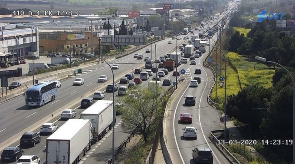 Η φωτογραφία είναι από τη Μαδρίτη σήμερα, πριν από λίγο. Οι κάτοικοι εγκαταλείπουν μαζικά την ισπανική πρωτεύουσα αφού το 50% των κρουσμάτων του κορωνοϊου της Ισπανίας έχει παρουσιαστεί εκεί.