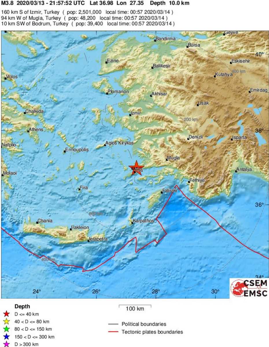 Ένας επιφανειακός σεισμός σημειώθηκε αργά το βράδυ της Παρασκευής, κοντά στην Κω.