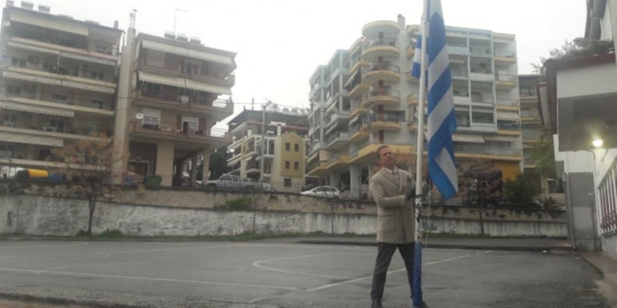 Ο διευθυντής του 2ου δημοτικού σχολείου Γιαννιτσών «Αλεξάνδρειο», Νίκος Αγγελίδης, τηρώντας τα μέτρα προστασίας, έκανε μόνος του την έπαρση της σημαίας στο προαύλιο του σχολείο, ενώ ακουγόταν από τα μεγάφωνα ο Εθνικός Ύμνος. «Ως εκπρόσωπος όλης της οικογένειας του σχολείου μας, τηρώντας ευλαβικά τα μέτρα προστασίας, τιμώ τη σημερινή ημέρα με την έπαρση της σημαίας μας και την ανάκρουση του εθνικού μας ύμνου, σύμβολα ενότητας και αγωνιστικότητας. Ο κορωνοϊός κρατάει μακριά τους ανθρώπους. Ας φέρουμε κοντά μας την ανθρωπιά. Εύχομαι η αυλή του σχολείου μας, άδεια και μελαγχολική σήμερα, να γεμίσει σύντομα ξανά, χαρούμενα παιδιά, που θα επιστρέφουν στα σπίτια τους με τους υγιείς γονείς τους και να τους περιμένουν οι υγιείς παππούδες και οι υγιείς γιαγιάδες τους» δήλωσε περιγράφοντας την πρωτοβουλία του.