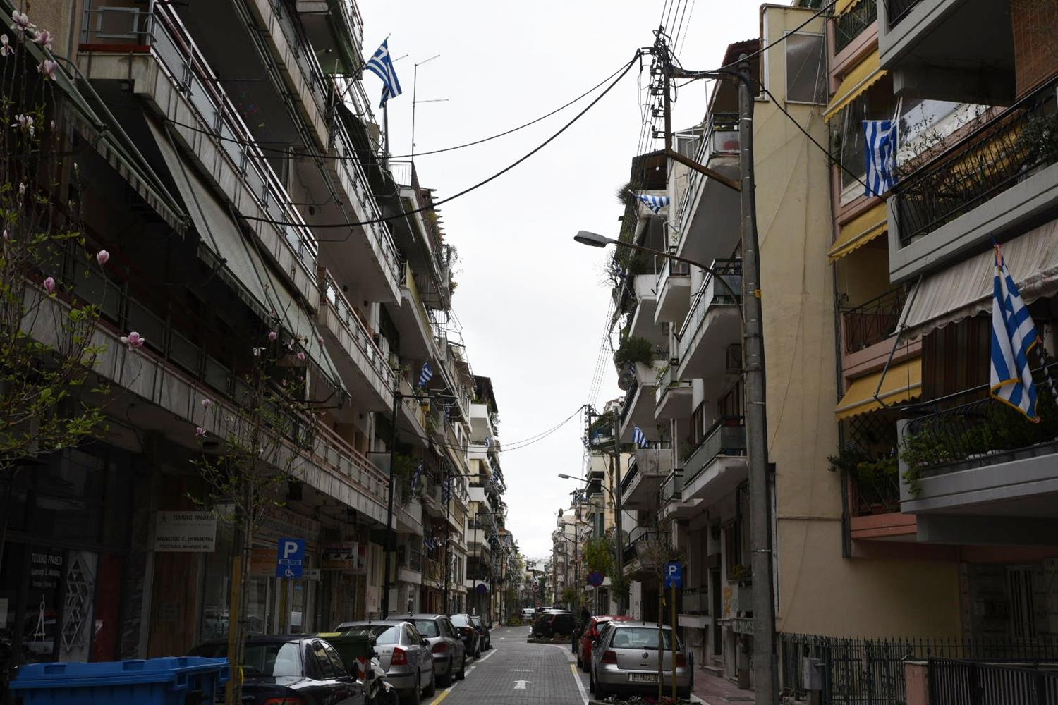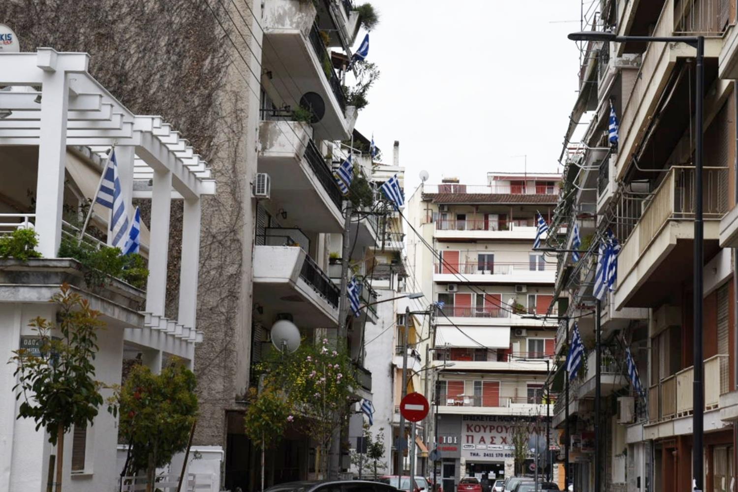To σκηνικό σε κάθε γειτονιά παραπέμπει στην εθνική μας επέτειο. Την εποχή του κορωνοϊού, οι σημαίες που μπήκαν στα μπαλκόνια είναι περισσότερες από κάθε άλλη φορά.