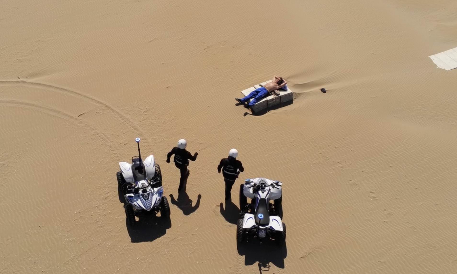 Οι αστυνομικοί μέσω drone εντόπισαν τον ανυποψίαστο λουόμενο και στη συνέχεια τον πλησίασαν. Καθώς πλησιάζουν οι αξιωματικοί, ο άντρας που κάθεται στην ξαπλώστρα του, έκπληκτος είδε δύο καλά εξοπλισμένους αστυνομικούς να στέκονται από πάνω του.