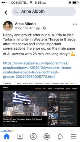 Η κυρία Άννα Αλμποθ, βγήκε μετά από την προβολή του επίσης απαράδεκτου ρεπορτάζ του Al Jazzera να πανηγυρίσει με μήνυμα της στα μέσα κοινωνικής δικτύωσης. Δηλώνει ευτυχισμένη και υπερήφανη επειδή γιατί και το Al Jazeera κάνει ρεπορτάζ για την τουρκική όπως την ονομάζει μειονότητα.