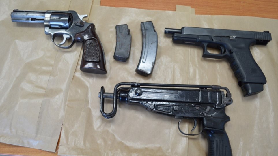 Κατά την έφοδο των αστυνομικών στο σπίτι του κακοποιού, κατασχέθηκαν ένα υποπολυβόλο, ένα πιστόλι και ένα περίστροφο που έχουν σταλεί στα εργαστήρια της Εγκληματολογικής υπηρεσίας για βαλλιστική εξέταση, καθώς και 133 φυσίγγια διαφόρων διαμετρημάτων, ένας κενός γεμιστήρας, μία συσκευή ηλεκτρικής εκκένωσης tazer, διάφορα κοσμήματα των οποίων η προέλευση εξετάζεται, τρία σφυριά, μια βαριοπούλα και μια κουκούλα full-face.