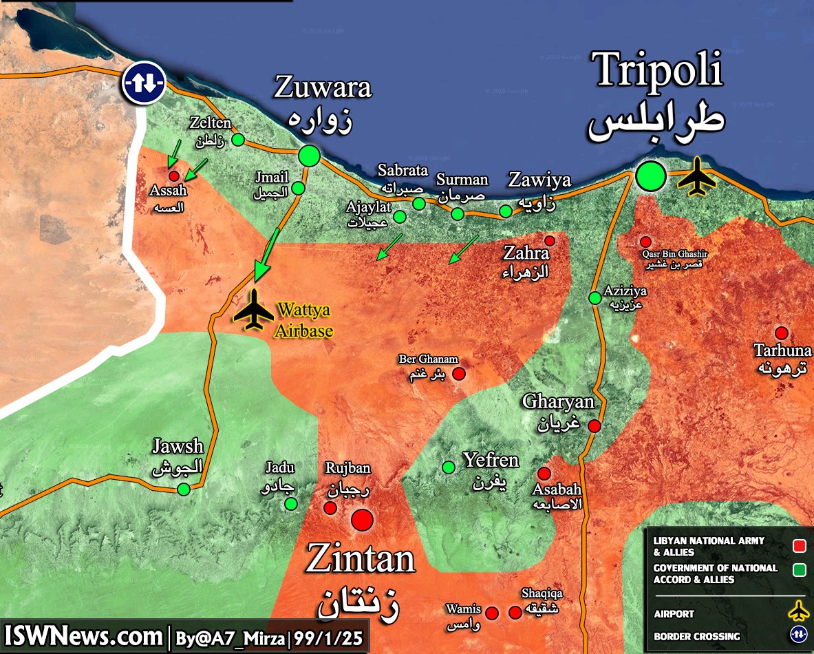 Το ζήτημα είναι ότι το φιλότουρκο καθεστώς της Τρίπολης του GNA, με την τουρκική βοήθεια κατάφερε να διαρρήξει σε αρκετά σημεία την πολιορκία της πόλης κατά τις μάχες των τελευταίων τριών εβδομάδων και να ανακαταλάβει δύο μεγάλες πόλεις στα δυτικά της Τρίπολης.