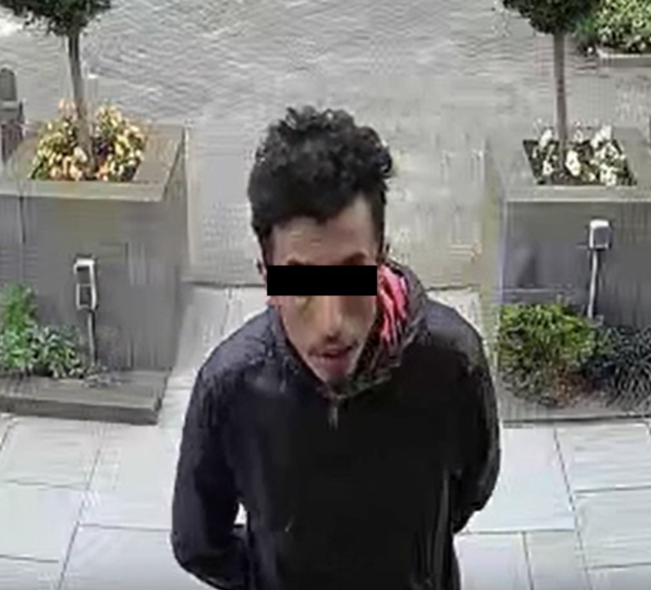 Πλάνα παρακολούθησης που ελήφθησαν από την αστυνομία έδειξαν ότι ο μετανάστης κρυβόταν γύρω από μια γειτονιά που δεν απέχει πολύ από το σημείο όπου έγινε η επίθεση νωρίτερα το ίδιο πρωί. Περίπου στις 7πμ ο αλλοδαπός καταγράφηκε να περπατά γύρω από μια κατοικημένη περιοχή όπου χτυπούσε τα κουδούνια σε πολλά σπίτια.