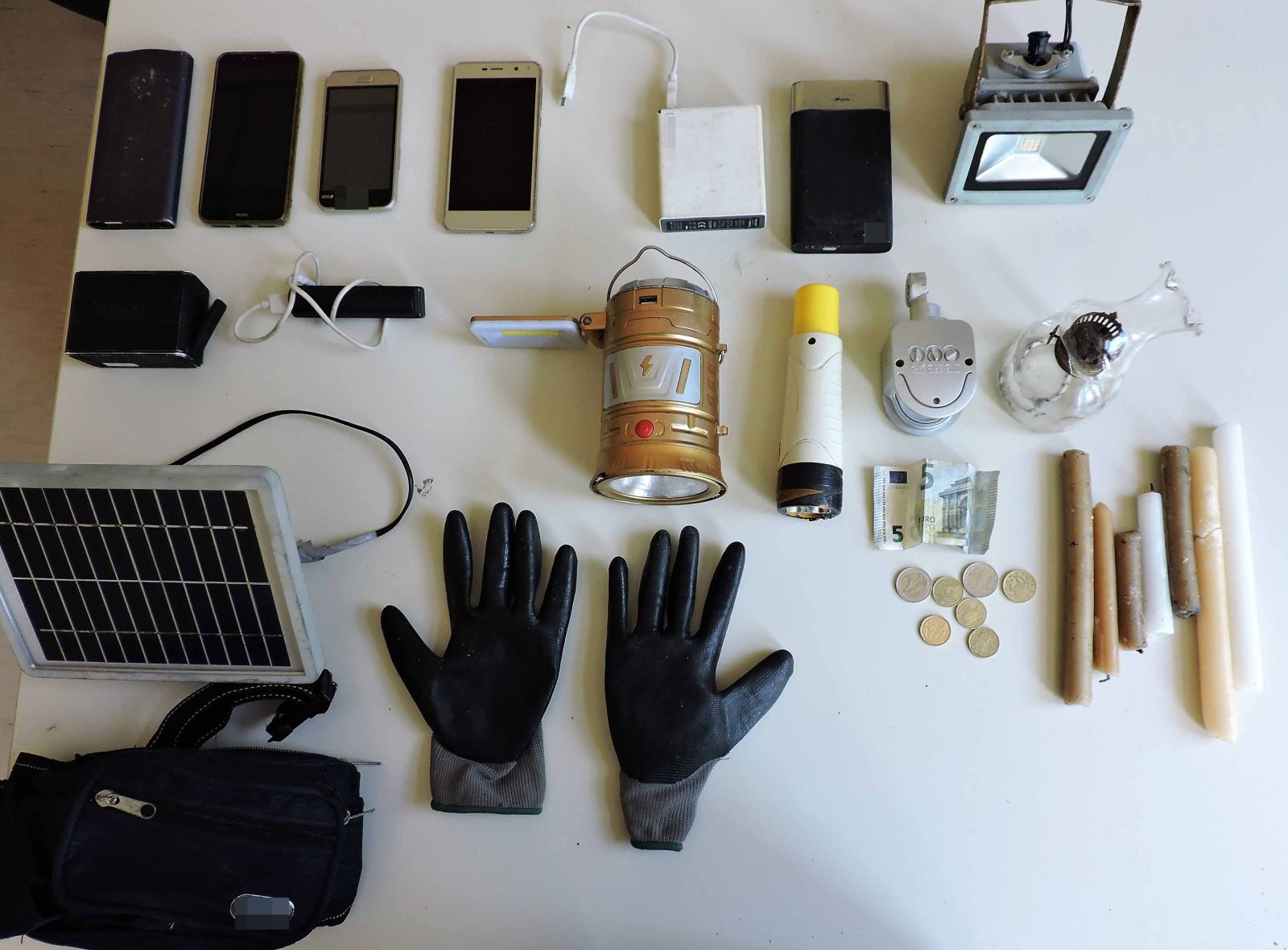 Λίγα μέτρα πιο κάτω όπως θα δείτε και στις φωτογραφίες που ακολουθούν, ο “δράκος” φαίνεται ότι ήταν οργανωμένος, αφού στην κατοχή του βρέθηκε εξοπλισμός που παράγει ρεύμα ώστε και εκείνος με την σειρά του να φορτίζει το κινητό του τηλέφωνο.