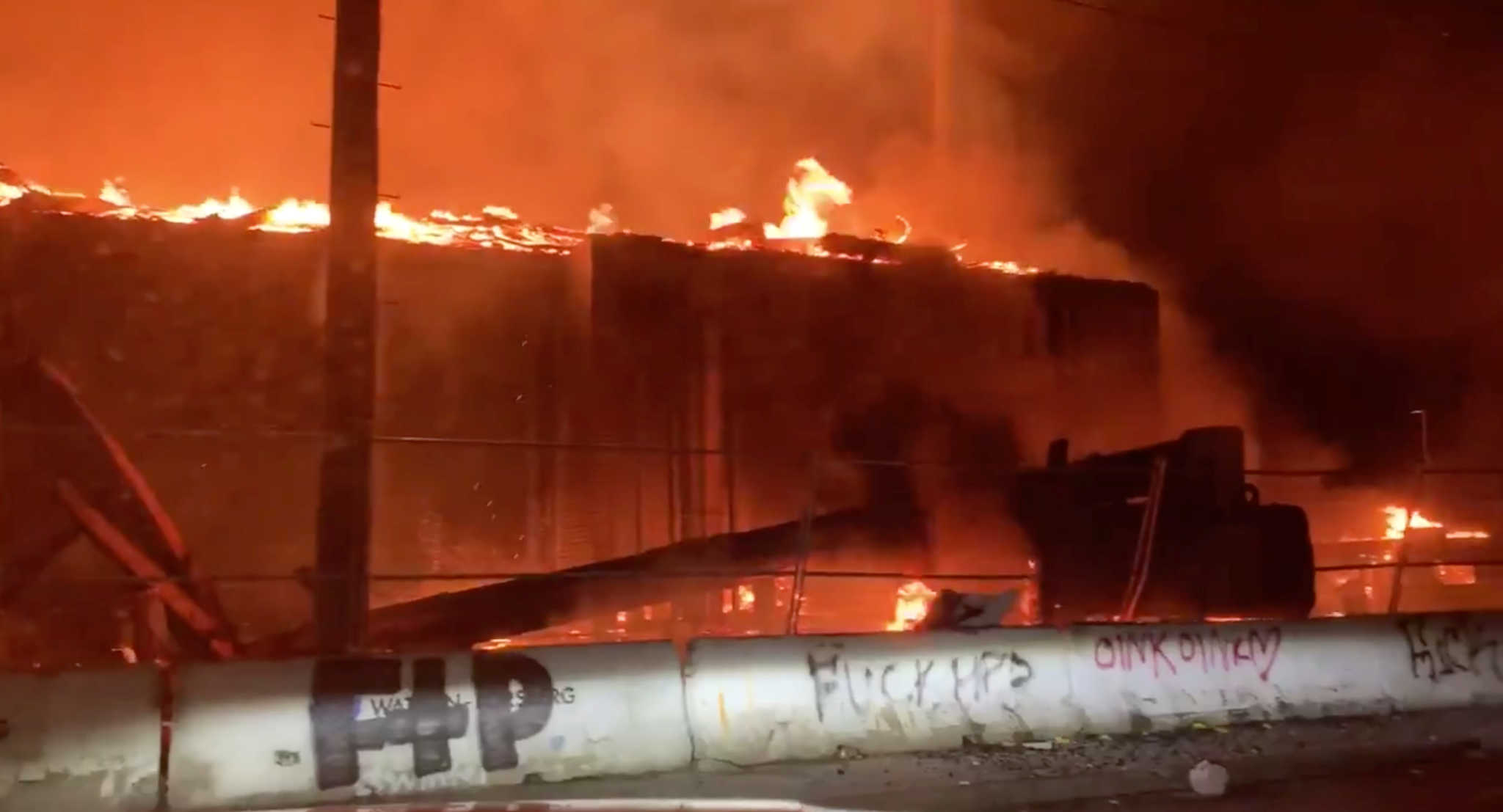 Νέες εικόνες από τους δρόμους της Μινεάπολης δείχνουν τεράστιες φλόγες να έχουν τυλίξει κτίριο στην πόλη, έπειτα από έκρηξη.