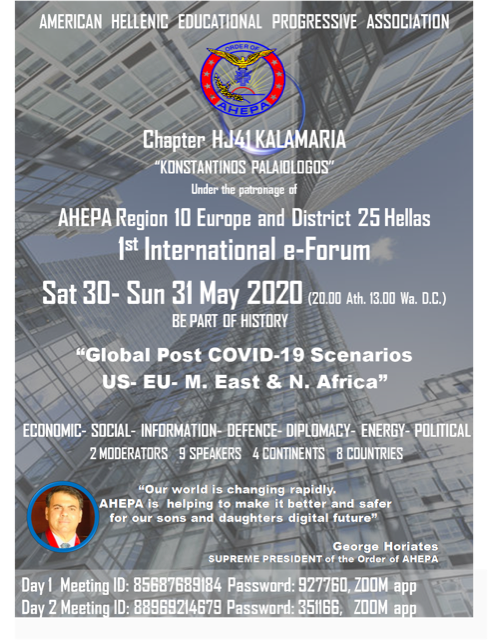 Το ηλεκτρονικό φόρουμ θα πραγματοποιηθεί το Σάββατο 30 και Κυριακή 31 Μαΐου στις 13:00 ώρα Ανατολικής ακτής ΗΠΑ EST-4 και 20.00 EEST+3 ώρα Ελλάδος, μέσω zoom.