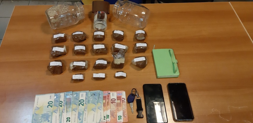 Ακολούθησε έρευνα στα σπίτια των δύο ανδρών όπου βρέθηκε και κατασχέθηκε το χρηματικό ποσό των 250 ευρώ ως προερχόμενα από διακίνηση ναρκωτικών ουσιών, ιδιόχειρες σημειώσεις και 2 κινητά τηλέφωνα.Κατασχέθηκε αυτοκίνητο ως μέσο διακίνησης ναρκωτικών ουσιών.